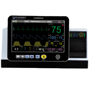 Acting as the communication hub, the IRadimed 3885B wireless control room base facilitates the printing and wireless communication through the patient monitor and tablet.