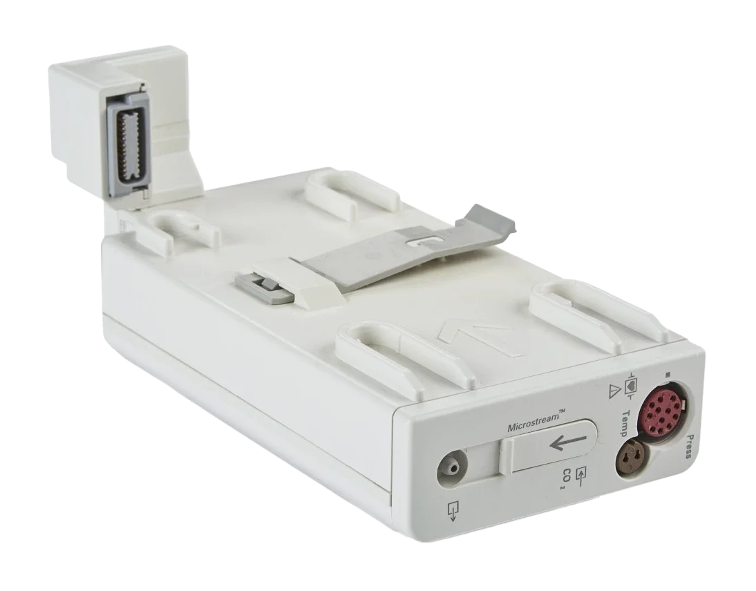 The Philips M3015A C06 Microstream is designed for patients ranging from neonates to adults for use in critical and intermediate care areas, operating rooms, general wards, and for transportation inside and outside the hospital. It can be mounted to the near the patient to reduce clutter. All patient connections are fully electrically isolated individually to create maximum patient safety.